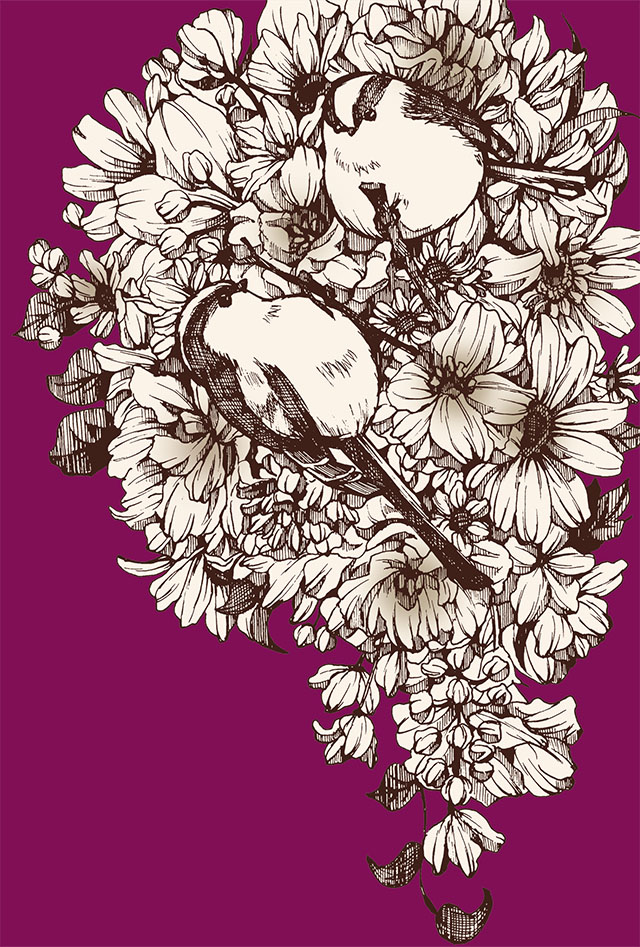 ミニ小判うちわ<歌舞伎シリーズ>「衣裳柄・名古屋山三」イラスト